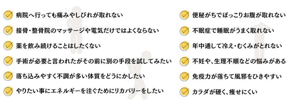 当院には下記のような悩みをお持ちの方が多くいらしています。